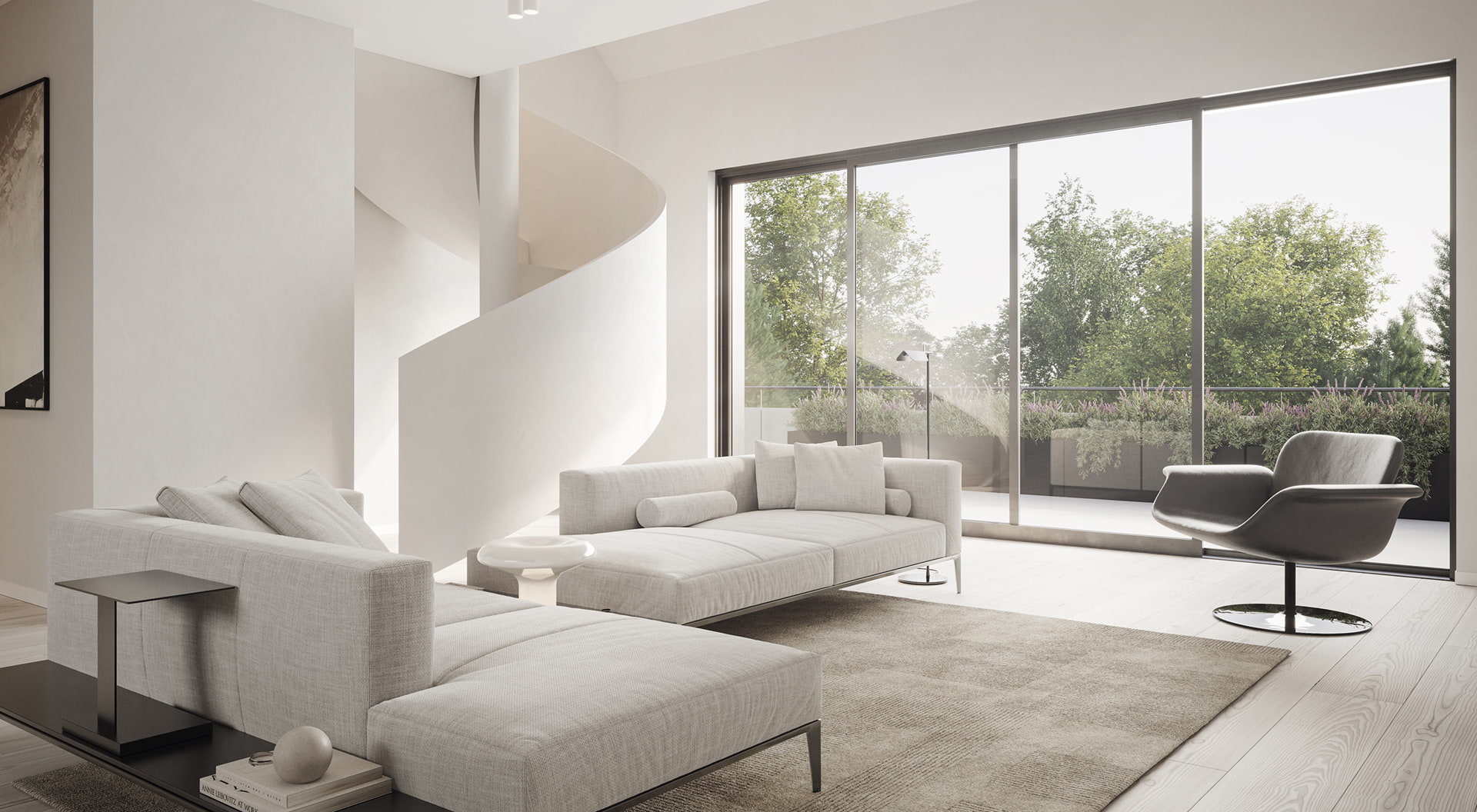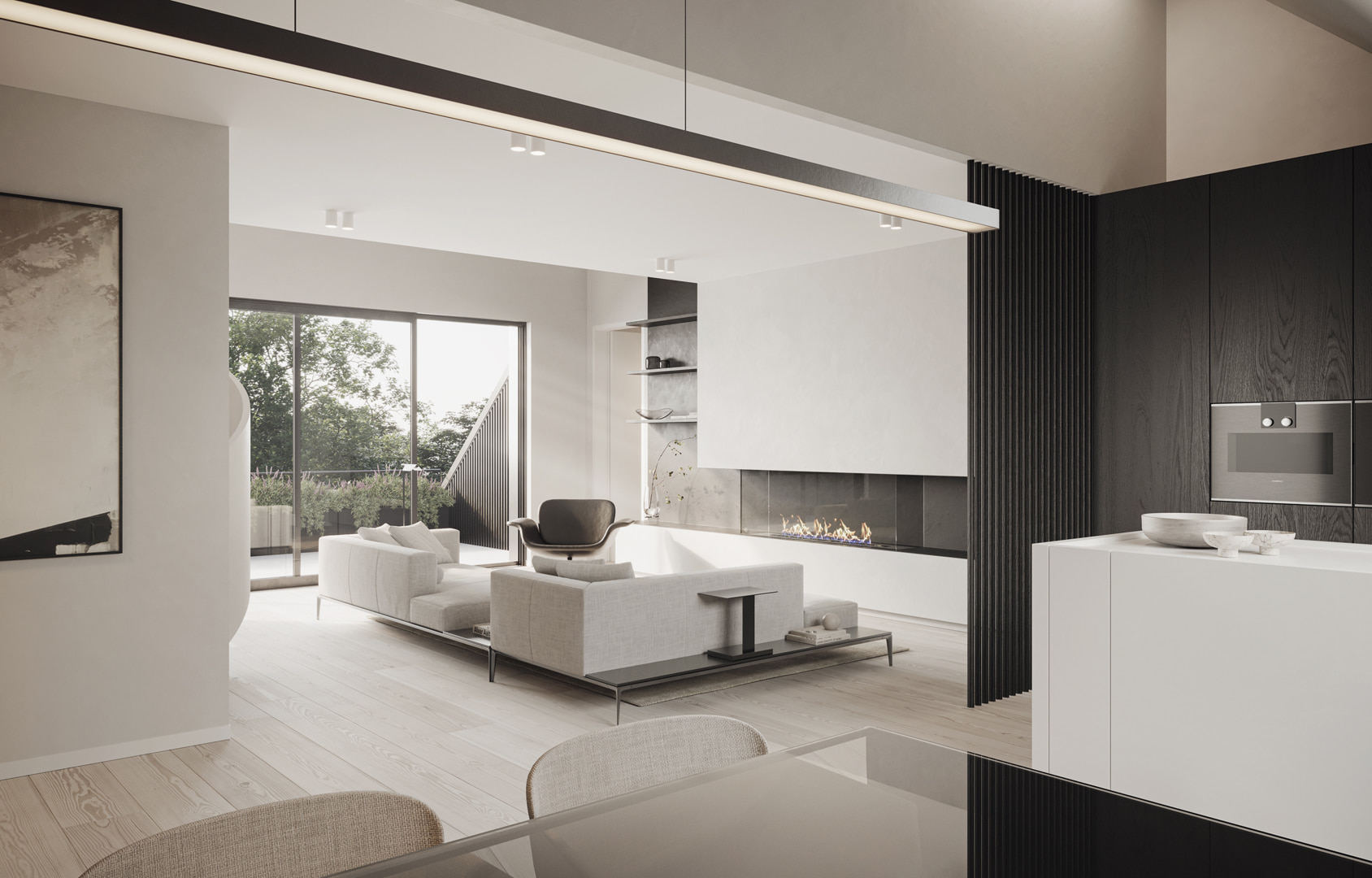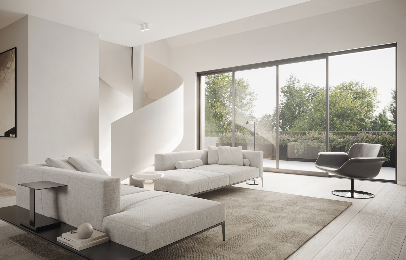 Die exklusiven Eigentumswohnungen überzeugen nicht nur durch durchdachte Raumkonzepte mit praktischer Flächennutzung und offener Großzügigkeit, sondern auch durch intelligent angeordnete Rückzugsbereiche.